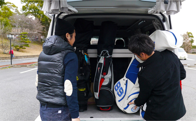 キャディーバックが楽々つめて、まるで前泊のように快適プレーができるのでベストスコア間違いなし!