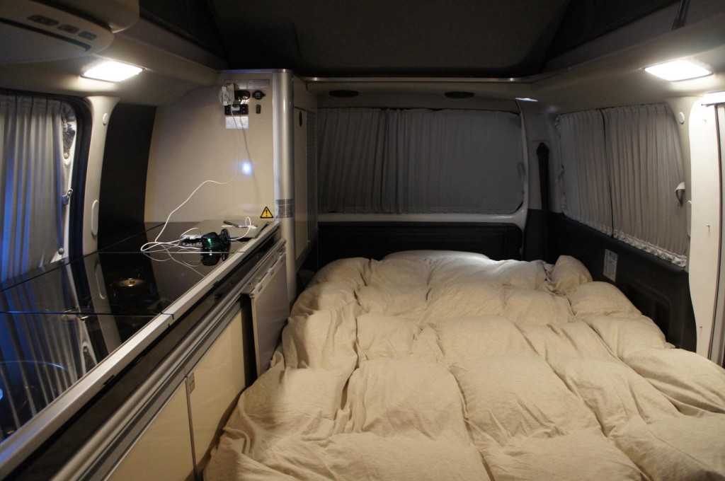 夜には宿に早変わり。キャンピングカーなら宿の予約に悩まされることはありません。