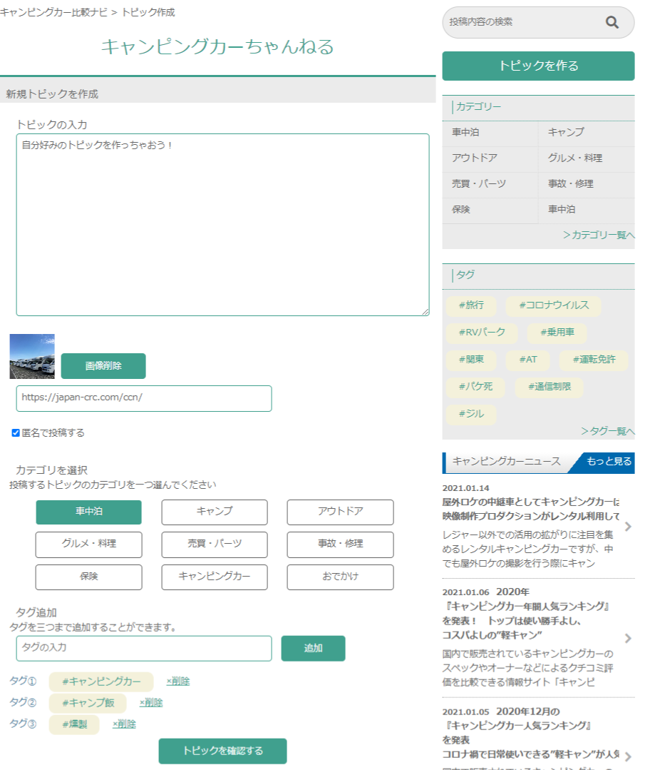 情報交換コミュニティ「キャンピングカーちゃんねる」とは