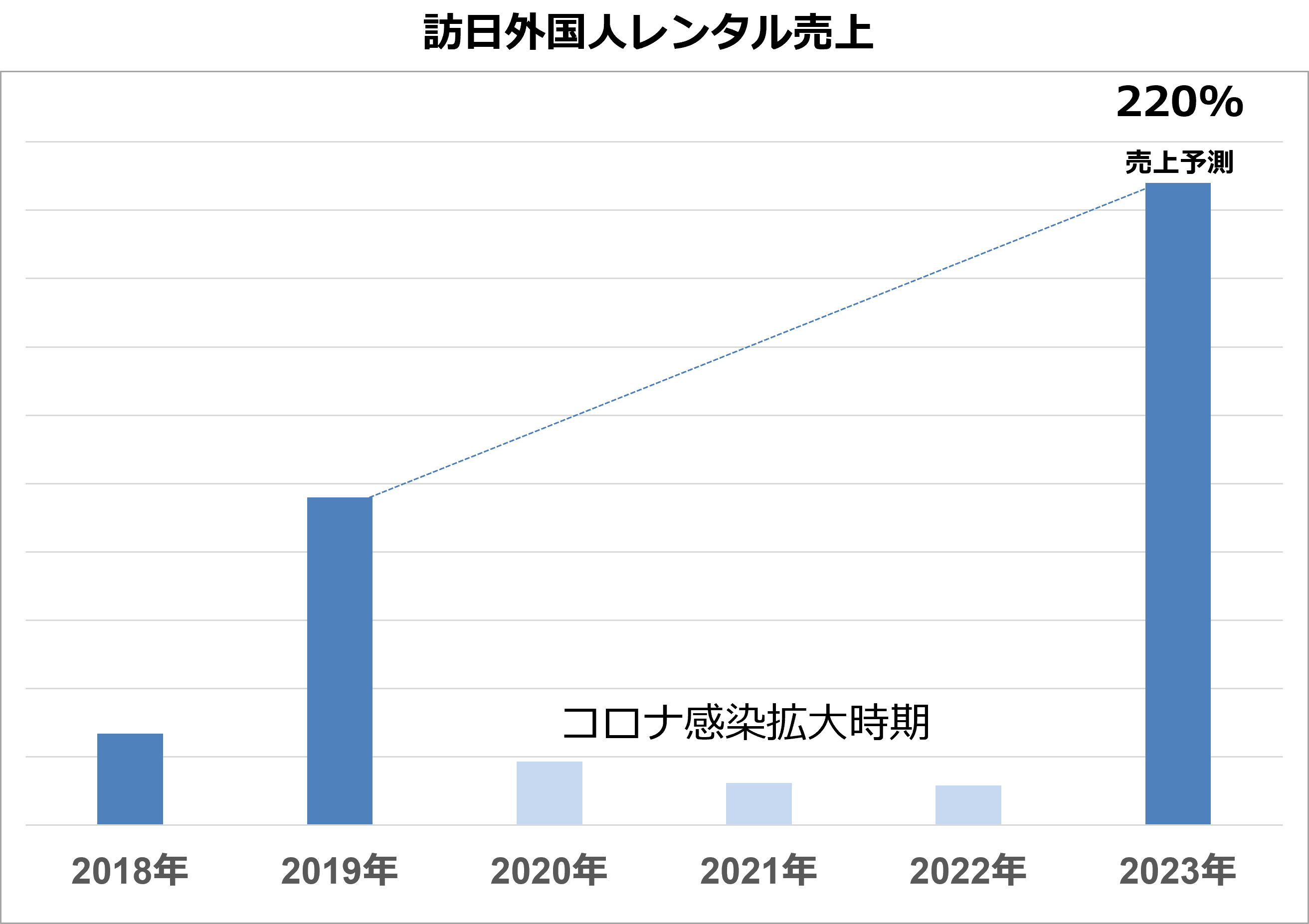 キャンピングカーレンタルにおける訪日観光客の過去最高売上は2019年でしたが、2023年にはアジア圏、欧州圏含め25か国からの利用があり、売上は11月時点で既に200%を達成致しました。年間の最終売上は順調に推移すれば2019年売上の220%と大幅増を見込んでいます。
