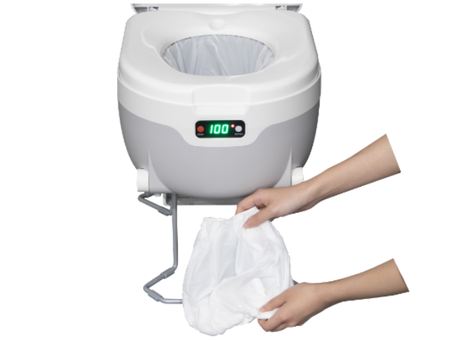ラップポン・サニーは、水を一切使わずに、排泄物を熱圧着で密封する革新的なポータブルトイレです。