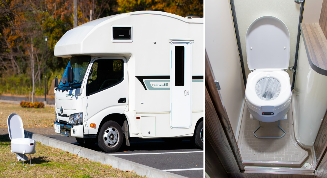 車内にコンパクトに設置でき、ドライブ中にトイレ休憩をとる必要がなくなります。渋滞等ですぐにトイレに行けないときにも大変便利です。