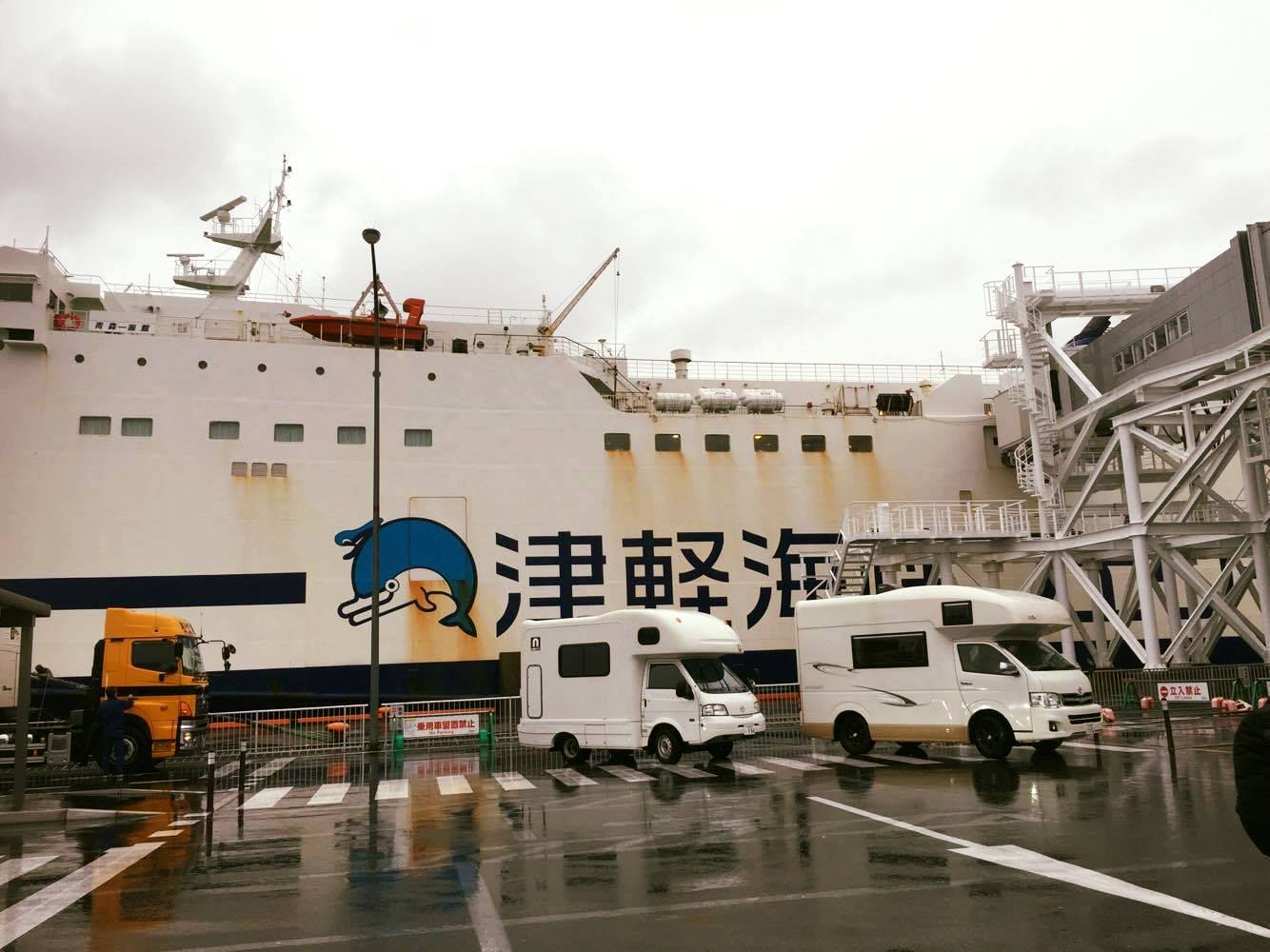 のんびり移動して、津軽海峡フェリー乗り場へ。このフェリー乗り場から北海道に向かうため、キャンピングカーと一緒に乗船!
