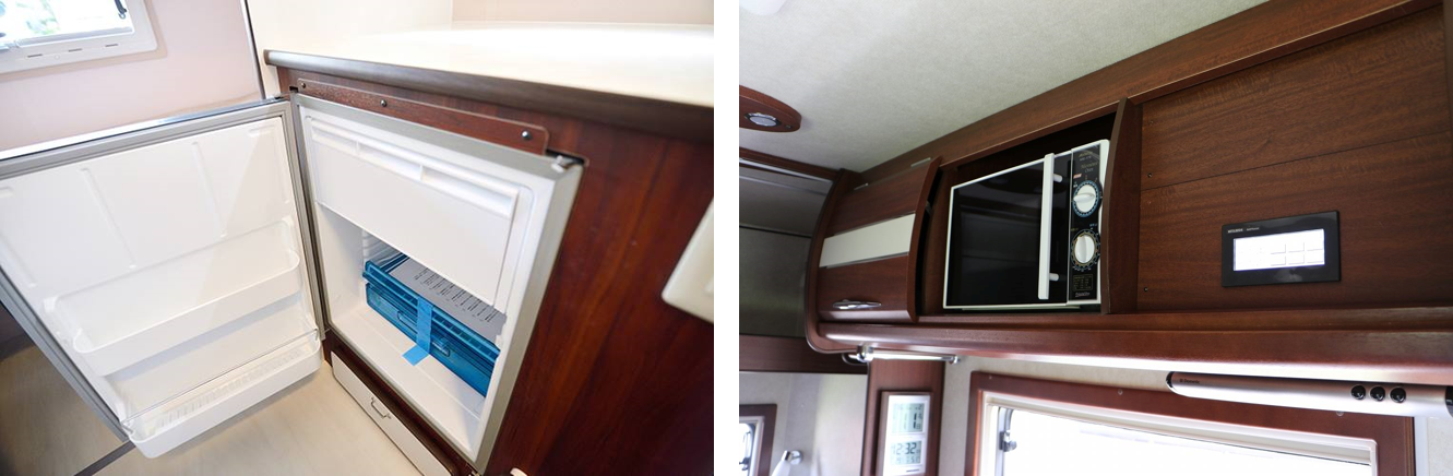 移動先のサービスエリアで買った暖かい食べ物や冷たい飲み物は、冷蔵庫や電子レンジが完備されているので、常においしく食べられます!