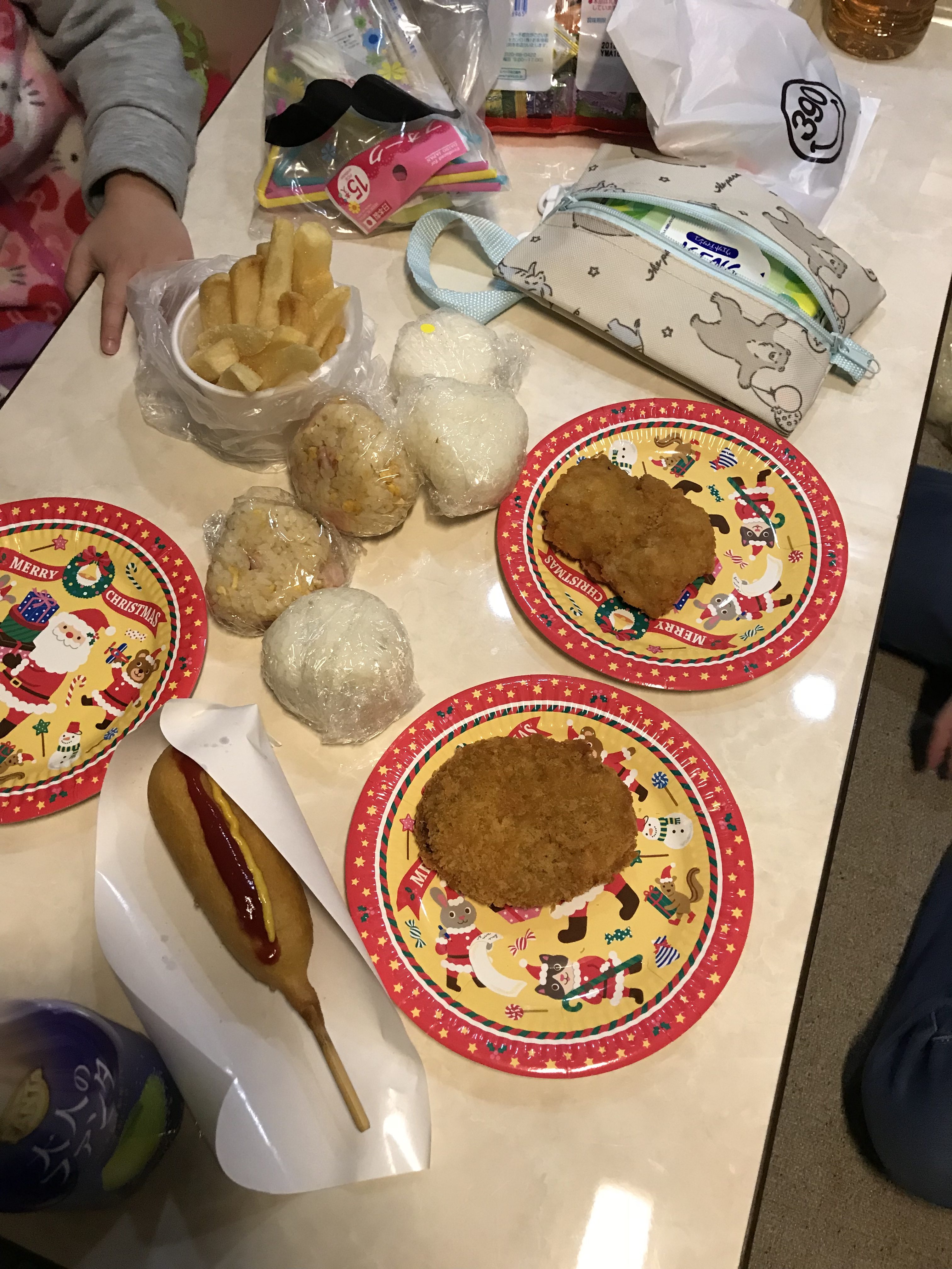 キャンピングカーに戻って家から持ってきたオニギリと一緒に夕食です。