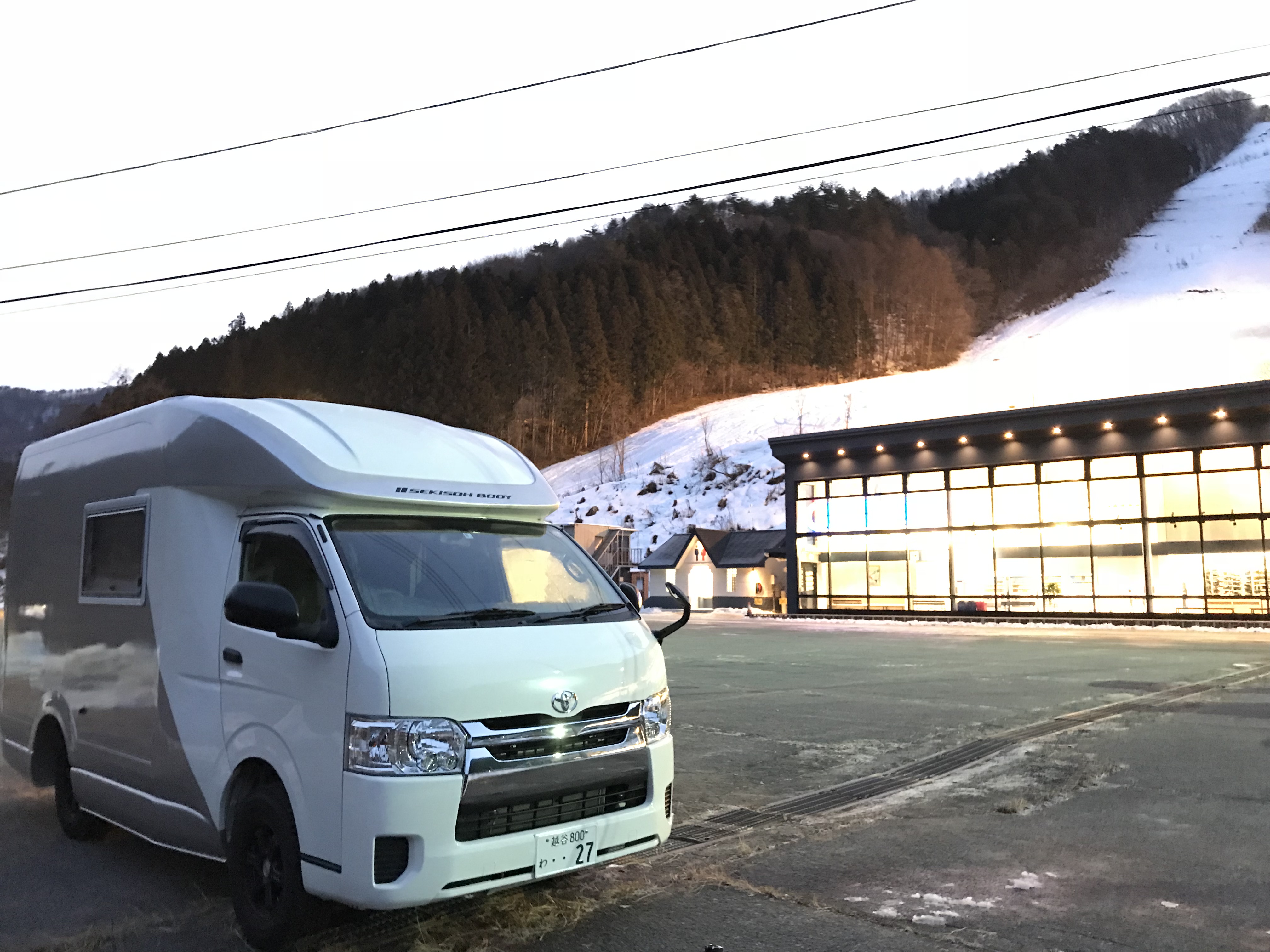週末、キャンピングカーをレンタルして家族でスノーボードに行って来た