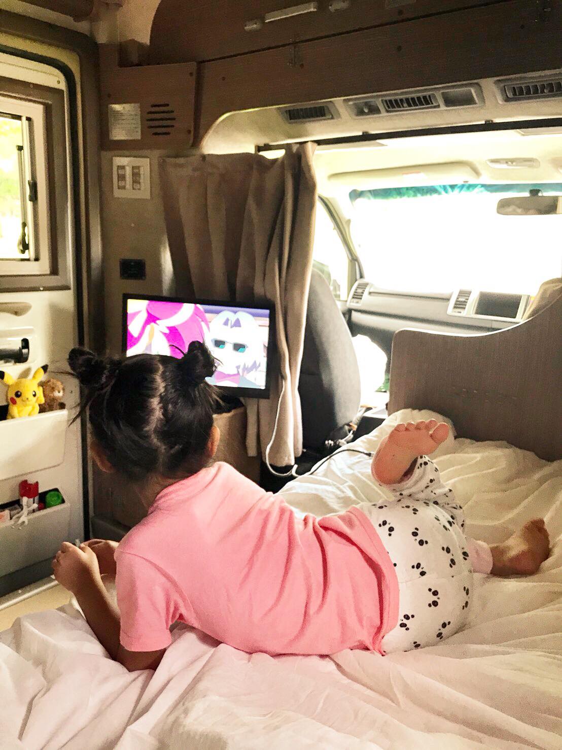 キャンピングカーを運転してるパパ。なんだかいつもよりカッコいい?