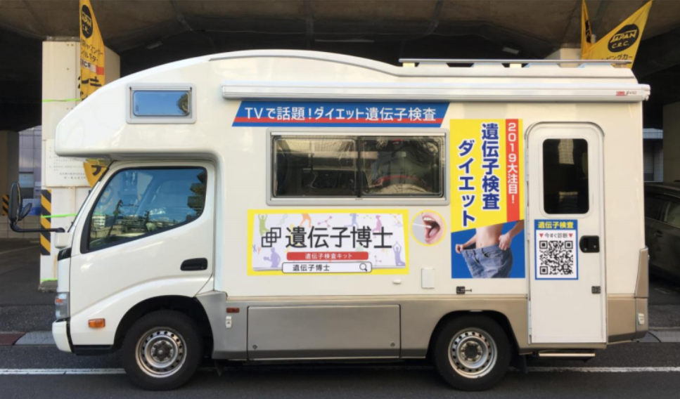 この度、遺伝子検査ダイエットで有名な「遺伝子博士」のラッピングキャンピングカーが走りはじめました!!
